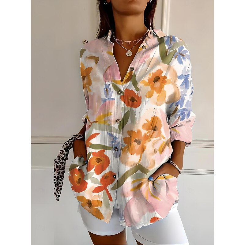 Women's Shirt Button Down Tunic Shirt Collar Long Sleeve Ombre Floral Graphic Bohemia Active Daily Regular Tops Work Daily s Print White Pink Blue Purple Orange Spring Fall 6