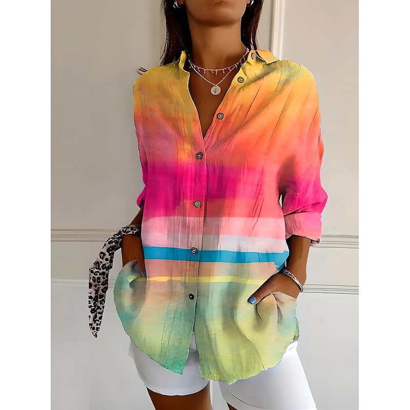 HOT ! Women's Shirt Button Down Tunic Shirt Collar Long Sleeve Ombre Floral Graphic Bohemia Active Daily Regular Tops Work Daily s Print White Pink Blue Purple Orange Spring Fall