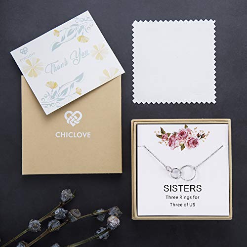 • 💖Sister necklaces for 3 -- This necklace was designed for 3 sisters to give to one another as a simple reminder of the love & special bond that only sisters can share. Three handmade sterling silver rings made inseparable - link together, forever - modern & timeless...a true keepsake your sisters will treasure forever.