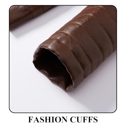 • Warm: The fur leather jacket overlays ensure water-repellent durability and thickened fuzzy fleece lining provides extra warmth and comfort. With a classic stand collar and ribbed cuffs, this waterproof jacket is more protective in cold winter.
