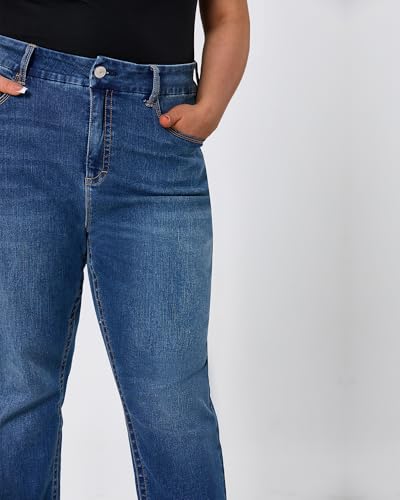 • Pro Sizing Hack: This plus size stretch jeans runs large, we recommend sizing down 2 sizes for the best fit; Model Specs: Size 14R shown on model (Height: 5'7" | Weight: 174 lbs | Waist: 37.8" | Hips: 44.9");