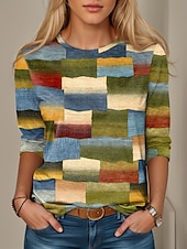 More information about Women's T shirt Crew Neck Long Sleeve Tunic Floral Geometric Plaid Print Regular Tops Round Neck Daily Weekend Pink Green Spring & Fall