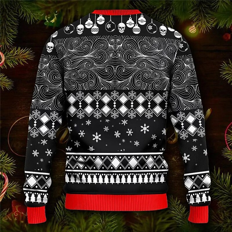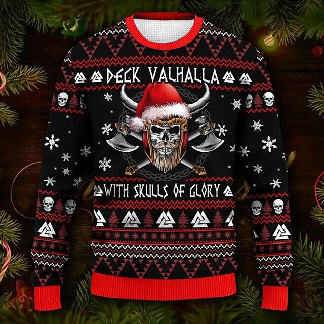 More information about Ugly Christmas Sweater Men's Funny Sweaters Skull Letter Snowflake Gothic Print Knitting Pullover Jumper Knitwear New Years Eve Sweater Outdoor Daily Vacation Long Sleeve Wine Black Red Fall Winter