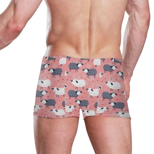 Mens Swim Trunk Swimwear Bathing Suit Swim Brief Square Leg Board Short S B0403392sheep Cute Animal 3