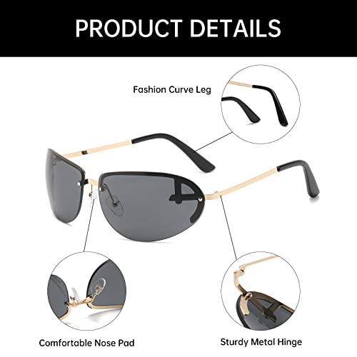 More information about YAMEIZE Trendy Rimless Y2k Oval Sunglasses - Fashion Metal Frame Sun Glasses for Women Men