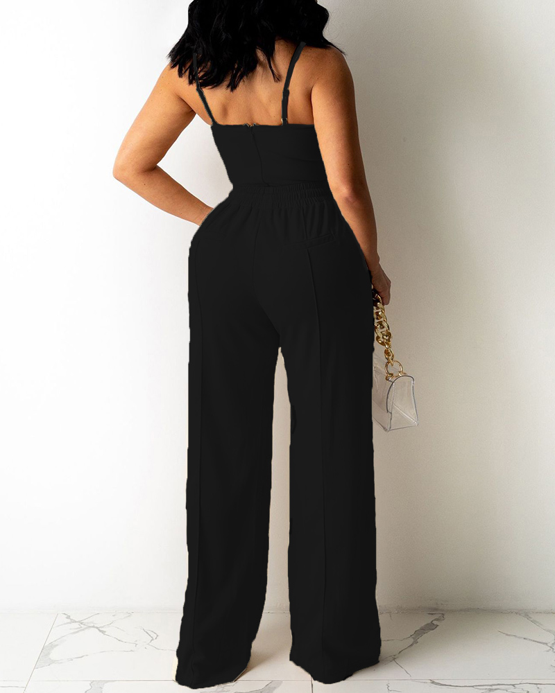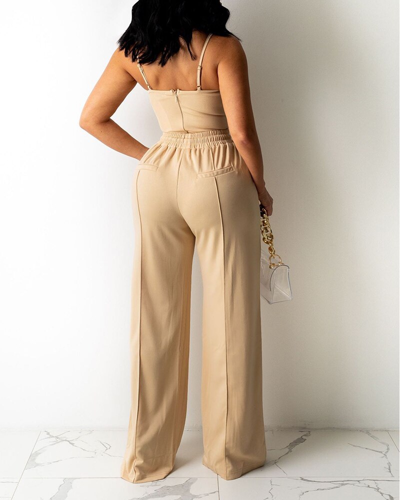 More information about Toloer 2PCS Women Sexy Zipper Back Cami Top Wide Legs Contrast Pipping Long Pants Set Elegant Workwear Casual Two Piece Suits Ropa
