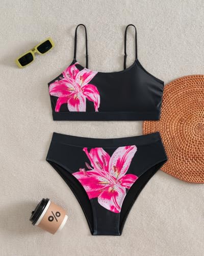 Bikini Sets for Women High Waisted Floral Print Two Piece Bathing Suit Adjustable Spaghetti Straps Swimsuit 6