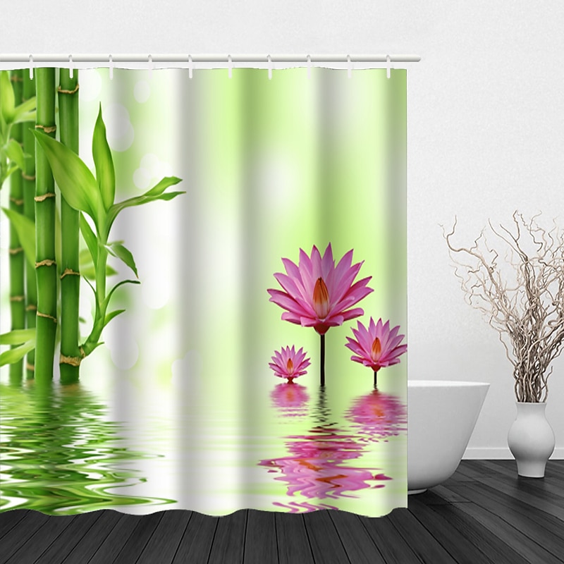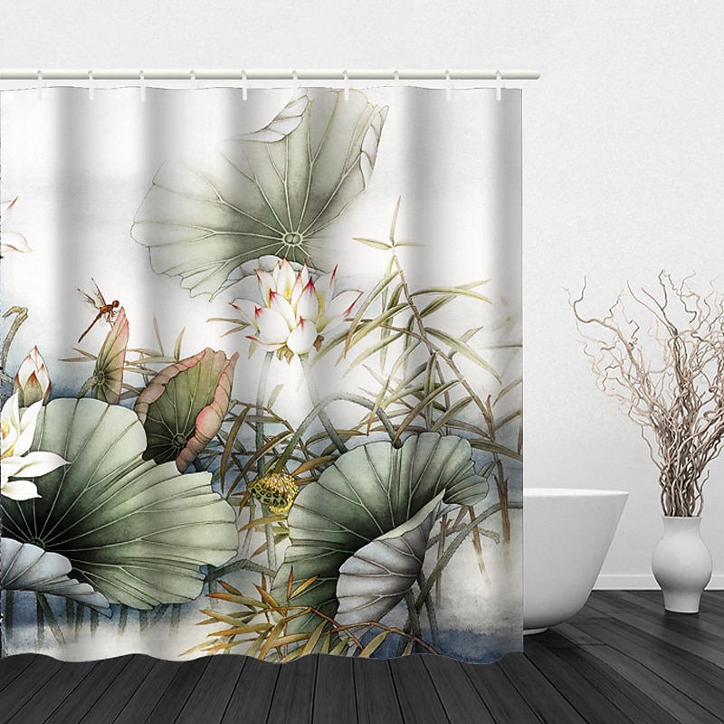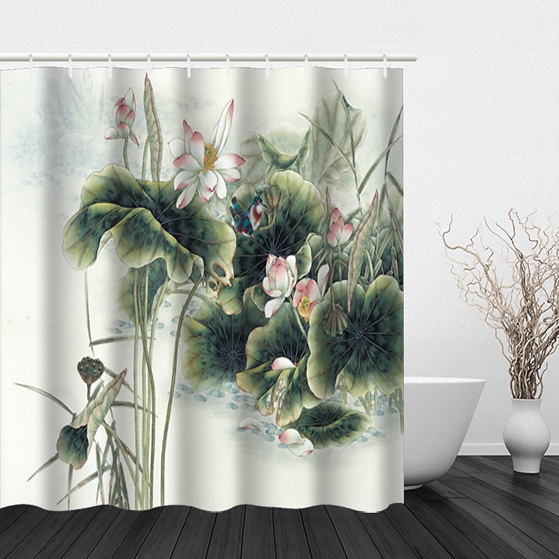Shower Curtain with Hooks 180cm*180cm(70"*70") Polyester Washable Waterproof Modern Bathroom Landscape Lotus Landscape Printing 11