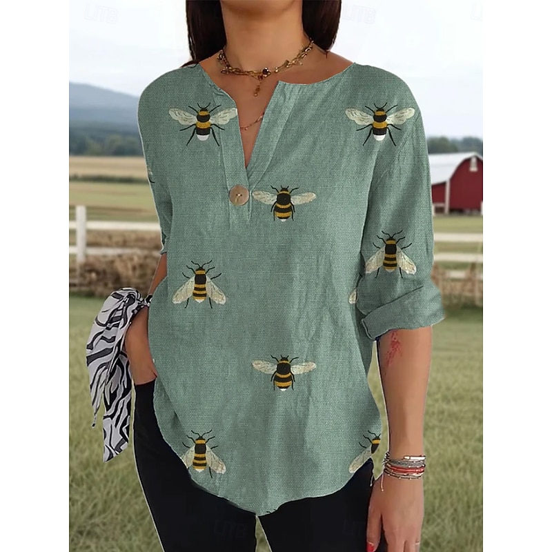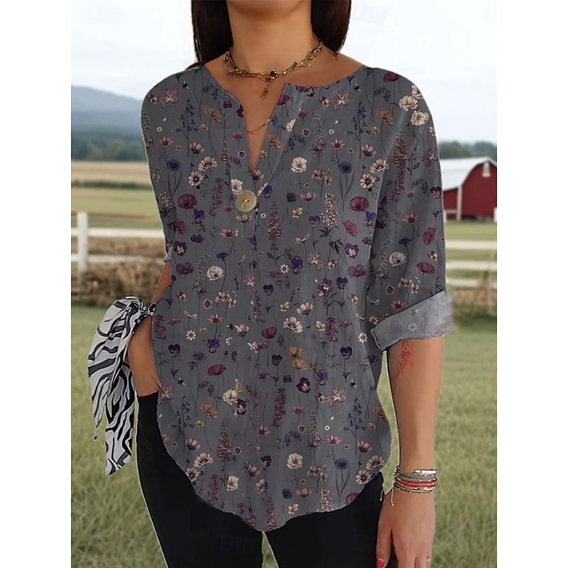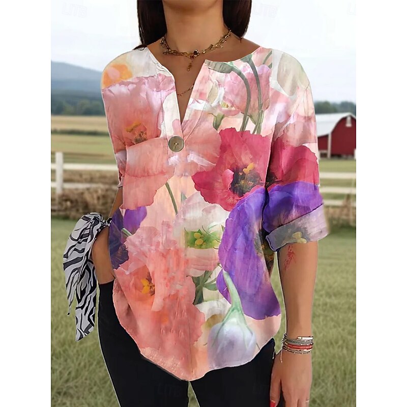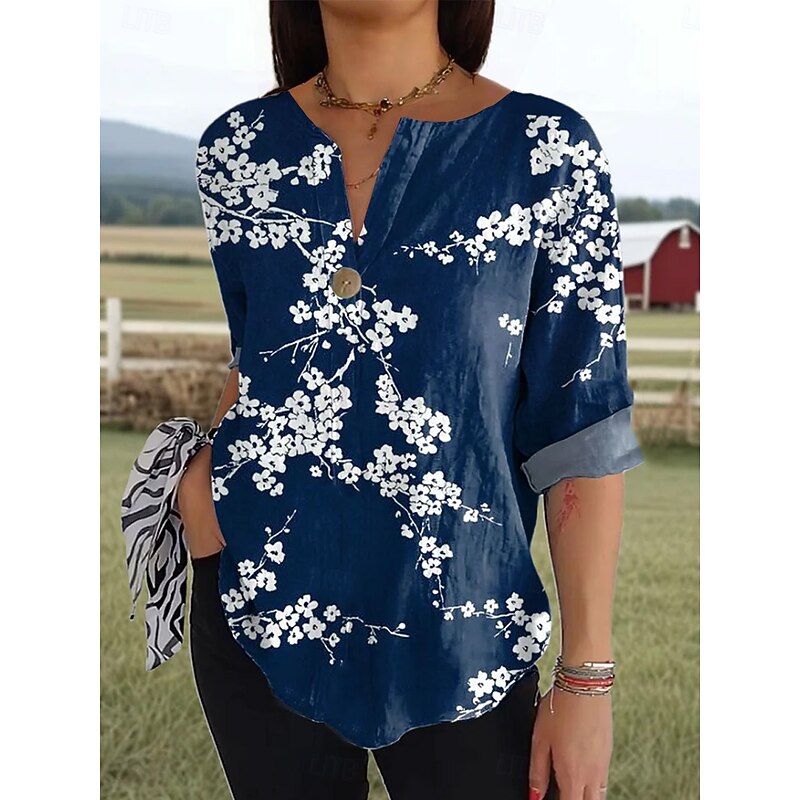 More information about Women's Shirt Long Sleeve V Neck Floral Graphic Vintage Tropical Hawaiian 3/4 Length Sleeve Crew Neck Regular Tops Daily Holiday Beach Wear Print White Pink Royal Blue Purple Green Summer Spring