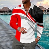 More information about Men's Geometric Hawaiian Polo Shirts Golf Shirt Long Sleeve Polo Shirts Collared Shirts Casual Beach Wear Vacation Wear Party Outfits 3D Print Quarter Zip Polo Red Blue Dusty Blue