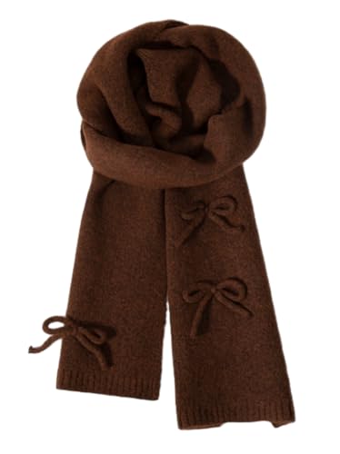 Winter Scarfs for Women Rich Solid Colors Chunky Knitted Scarf with Bow Fashion Warm Pashmina Shawl Wraps Scarves 5