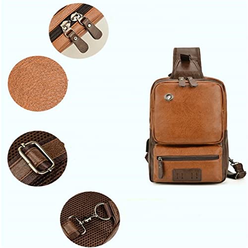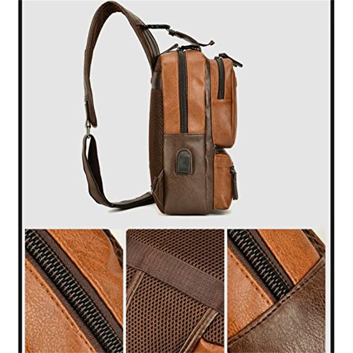 HOT ! Men's Sling Chest Bag Men's PU Chest Bag Shoulder Bag Messenger Bag Large Capacity Casual Large Bag for Hiking Travel Sports(2)