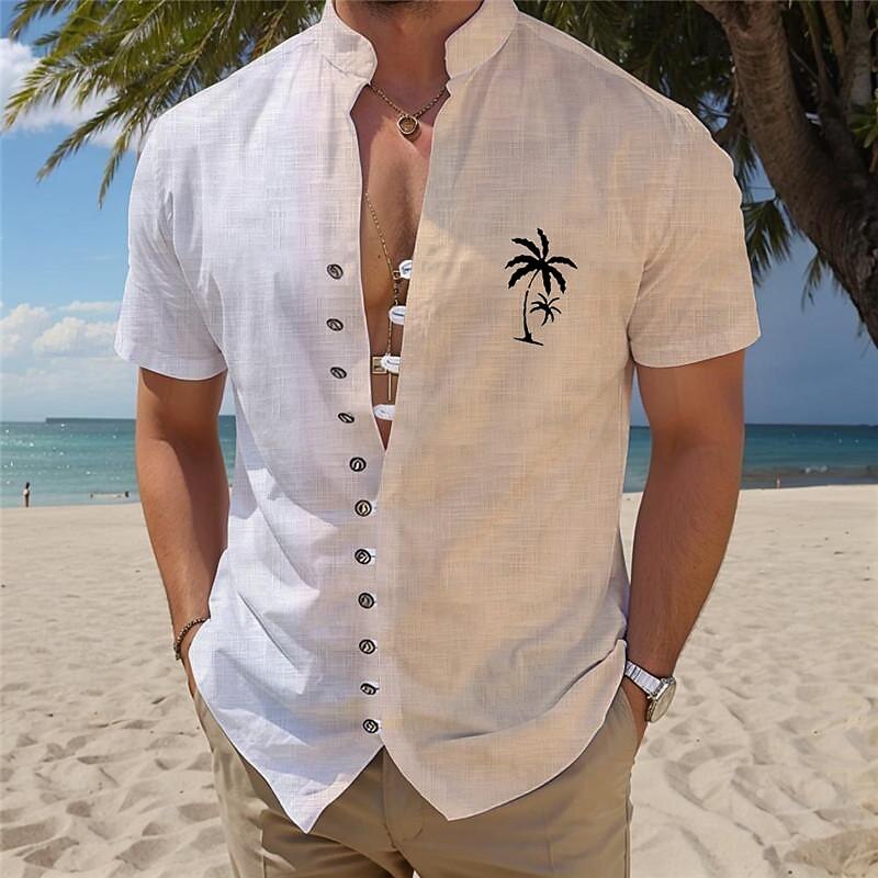Highlights [Fabric and Comfort]: Crafted from high-quality polyester, this Men's Hawaiian shirt offers a lightweight and breathable fabric perfect for warm summer days. The micro-elasticity ensures a comfortable fit that allows ease of movement. [Fit and Style]: Designed in a regular fit, this short-sleeve shirt provides a relaxed yet stylish silhouette, making it an ideal piece for both leisure and holiday outings. The standing collar adds a touch of sophistication to the classic Hawaiian attire. [Design Highlights]: Featuring a vibrant print of palm trees and tropical plants, this button-down shirt captures the essence of a tropical getaway. The subtle palm tree embroidery on the chest adds an extra layer of detail that enhances its resort-style appeal. [Occasions]: Perfect for daily wear, vacations, or holiday gatherings, this shirt embodies a laid-back, summery vibe suitable for various casual events. Whether you're spending a day at the beach or attending a casual get-together, this shirt delivers effortless style and comfort. [Size Range]: Available in a wide range of sizes from S to 3XL, ensuring a comfortable fit for adults of different builds.