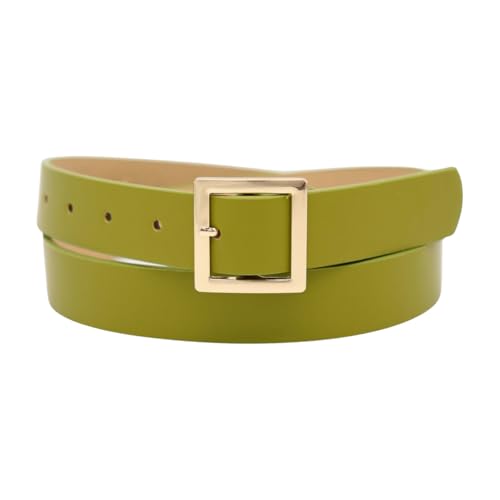 Women Fashion Belt Business Casual Faux Leather Band Gold Square Buckle S M Green z002 5