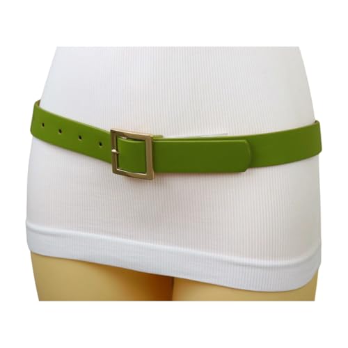 Women Fashion Belt Business Casual Faux Leather Band Gold Square Buckle S M Green z002 3