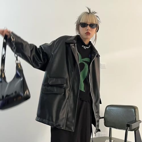 More information about Y2K Faux Leather Jacket Women Dark Academia Oversized Leather Jacket Harajuku Grunge Motorcycle Jacket Punk Coat