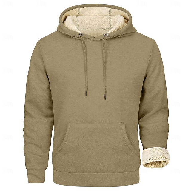 More information about Men's Hoodie Pullover Hoodie Sweatshirt Fleece Hoodie Fleece lined Hoodie Apricot Black White Army Green Red Hooded Plain Pocket Kangaroo Pocket Sports & Outdoor Casual Daily Fleece Polyester