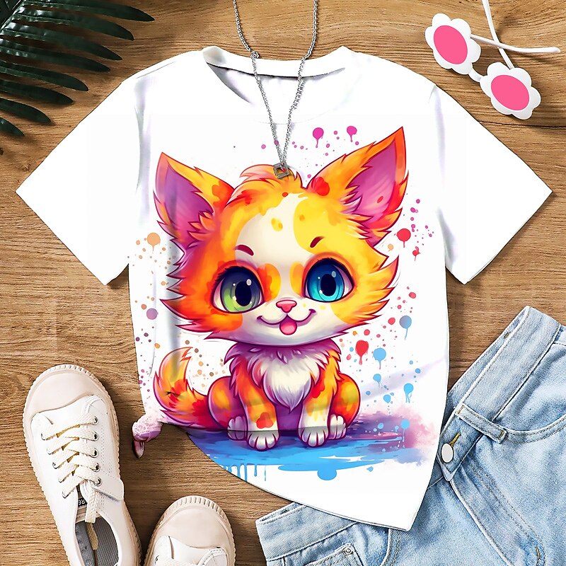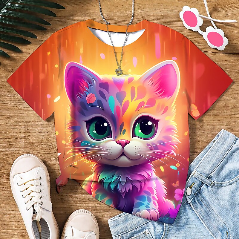 More information about Girls' 3D Graphic Cartoon Cat T shirt Tee Short Sleeve 3D Print Summer Spring Active Fashion Cute Polyester Kids 3-12 Years Outdoor Casual Daily Regular Fit