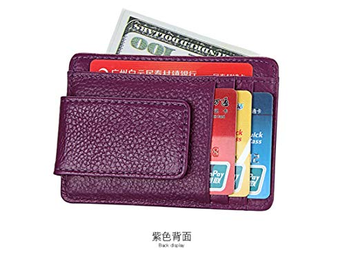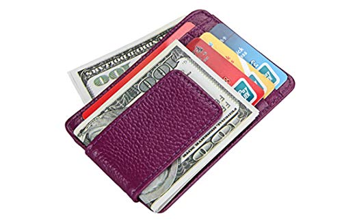 HOT ! RFID Blocking Slim Money Clip Genuine Leather Minimalist Front Pocket Wallet for Men Women (Purple)