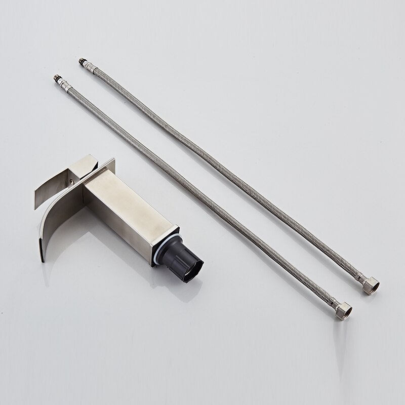 Waterfall Bathroom Sink Mixer Faucet, Washroom Mono Basin Taps Single Handle Deck Mounted Chrome Black Brushed, with Cold and Hot Hose Monobloc Water Tap