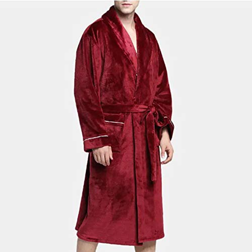HOT ! Mens Hooded Robe Winter Plush Shawl Bathrobe Soft Warm Flannel Fleece House Robes Coat Pajamas with Pockets