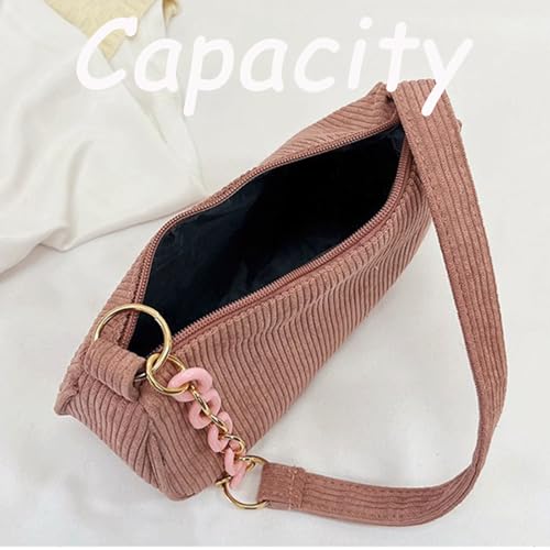 Corduroy Tote Bag Vintage Corduroy Crescent Shoulder Bag with Alt Chain Strap for Women Small Trendy Underarm Hobo Purse 6