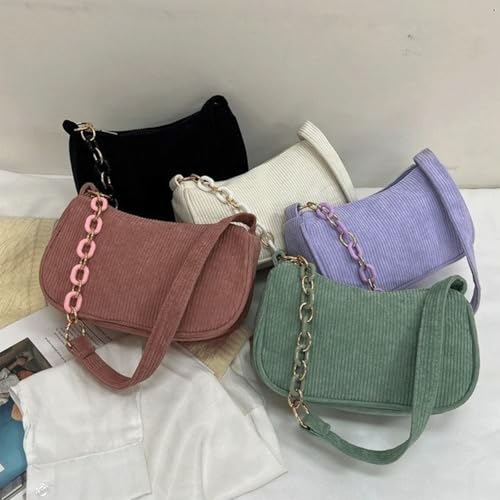 HOT ! Corduroy Tote Bag Vintage Corduroy Crescent Shoulder Bag with Alt Chain Strap for Women Small Trendy Underarm Hobo Purse