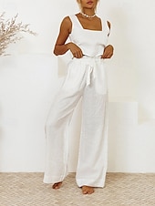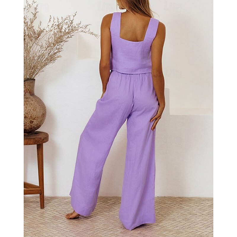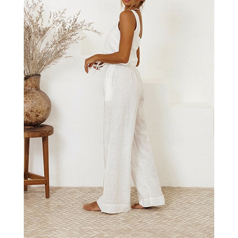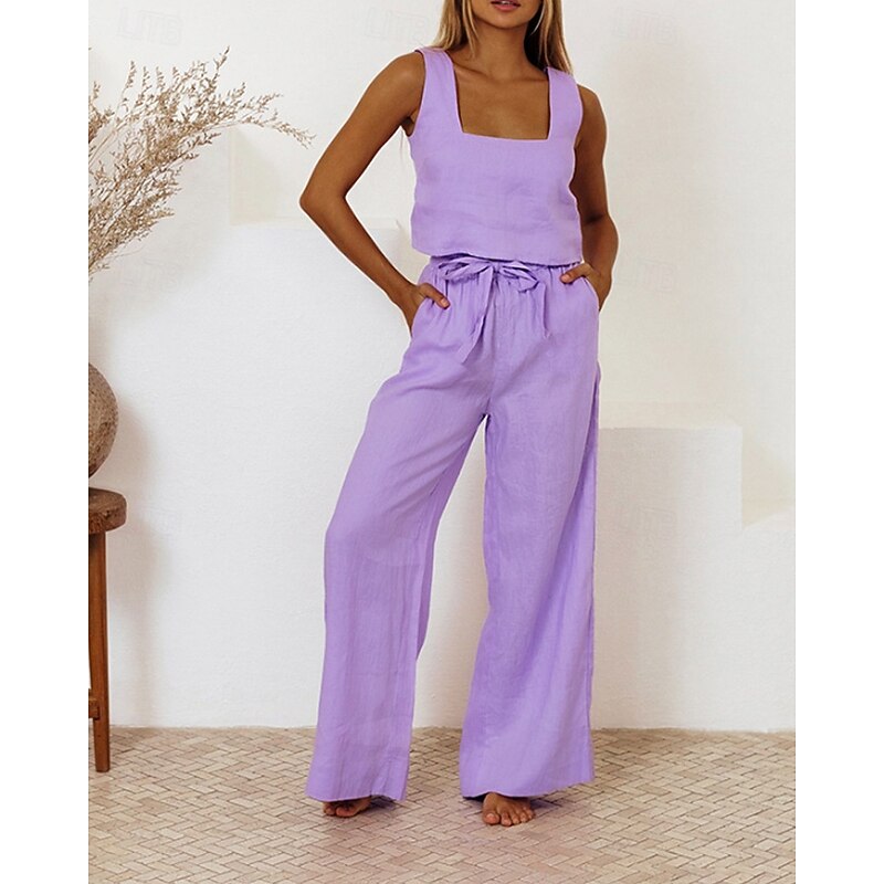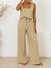 More information about Women's Active Fashion Blouse Pants Sets Sleeveless U Neck Solid Color Drawstring Holiday Going out White Purple Khaki Summer Regular Fit