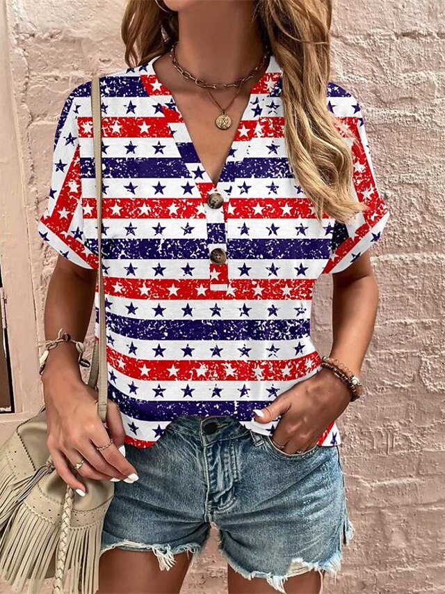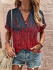 More information about Women's T Shirt Floral Fashion Short Sleeve V Neck Regular Tops Daily Weekend Buttons Print Black White Wine Red Summer