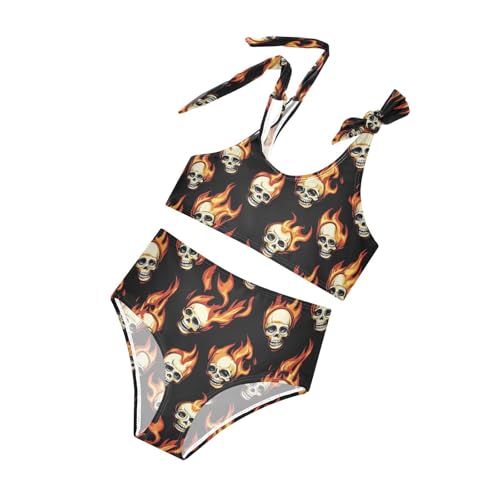 Wusikd Flaming Skulls Girls Swimsuits Two Piece Black Swimwear Bikini Set for for Girls Size 3T 4