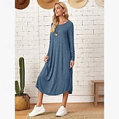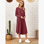 More information about Women's Midi Dress T Shirt Dress Tee Dress Shift Dress Casual Boho Daily Sports Going out Loose Fit Plain Long Sleeve Crew Neck Black Red Blue Gray Spring Fall Winter Autumn