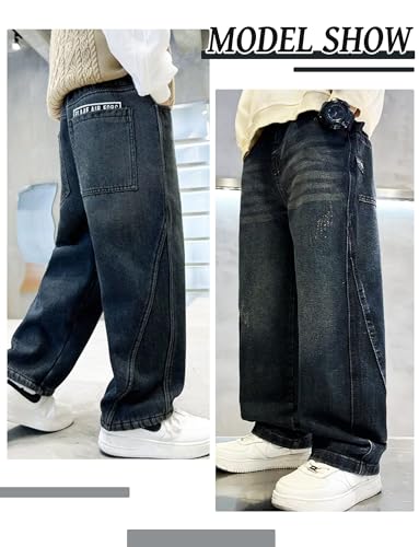 • [Size]- Boy's denim pants feature an elastic waistband and mid-rise design paired with a loose, wide-leg cut, creating a trendy and fashionable look for boys aged 5-14 and ensuring ease of wear