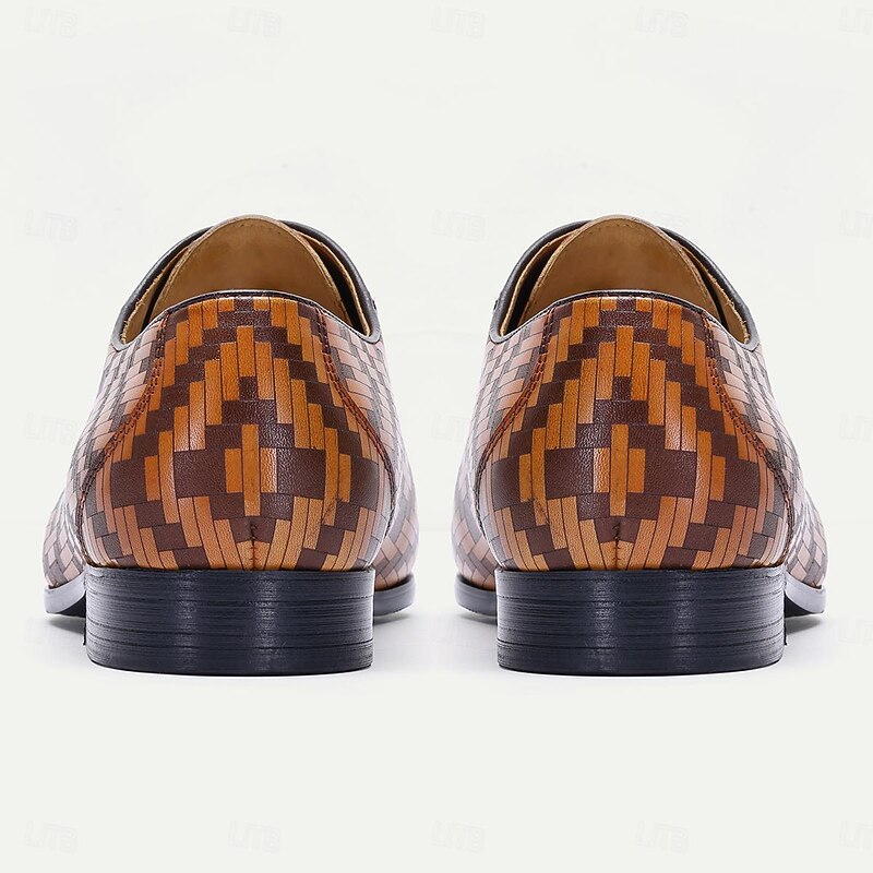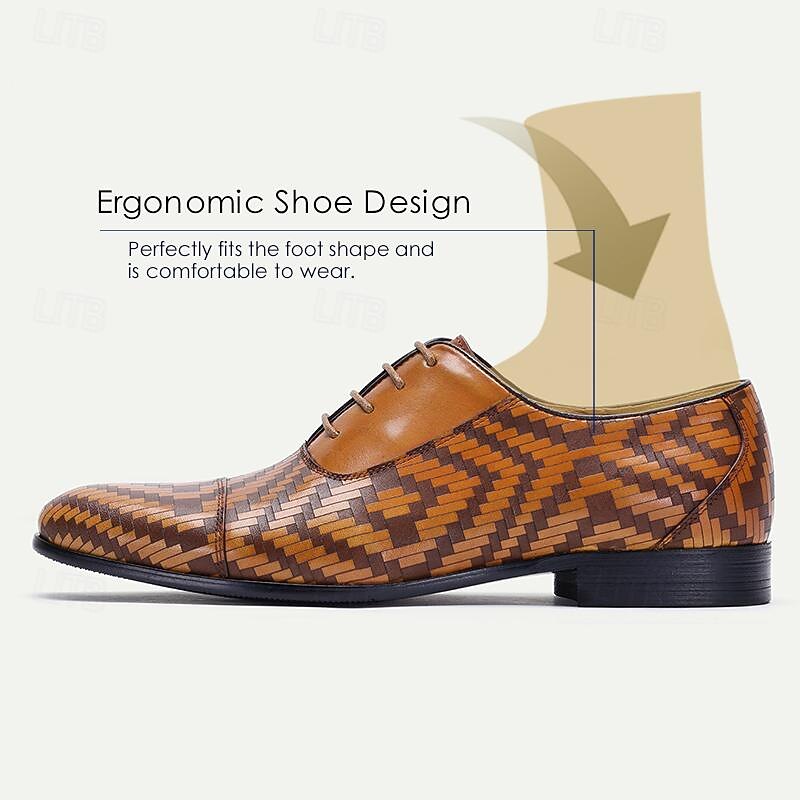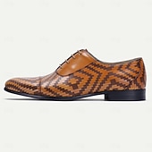 More information about Men's Dress Shoes Brown Herringbone Pattern Italian Leather Slip Resistant Lace-up