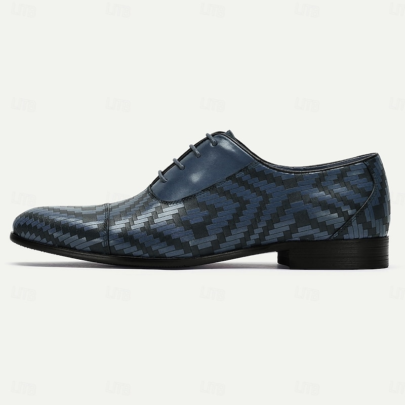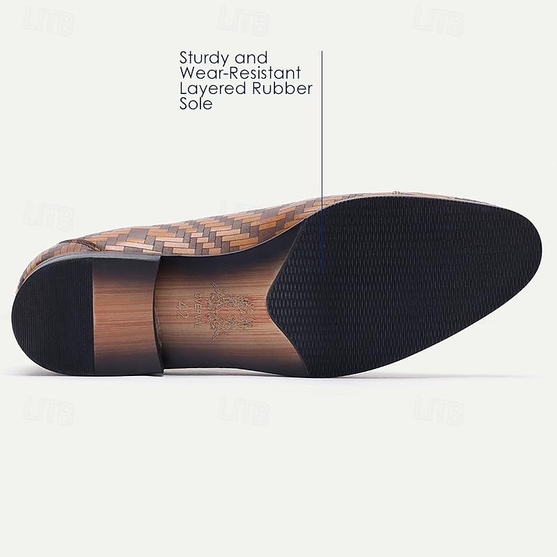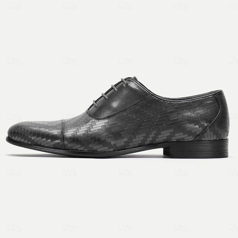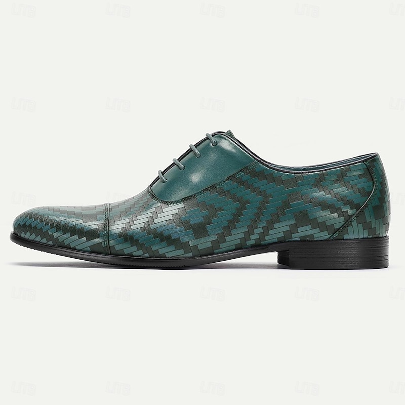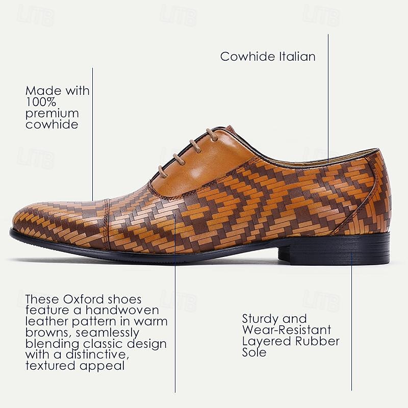 Highlights [Fabric] : Expertly crafted from 100% premium Italian full-grain cowhide leather, these men's dress shoes promise both unparalleled durability and a luxurious texture. The embossed, color block pattern showcases a rich blend of colors that adds depth and sophistication to the design. [Model] : These shoes feature a classic lace-up closure complemented by a round toe design, offering a timeless silhouette that blends tradition with modern style. The rubber outsole ensures slip resistance and walking comfort, making these shoes a reliable choice for any occasion. [Design Highlights] : The intricate herringbone pattern embossed within the leather creates a dynamic visual appeal, setting these shoes apart with a unique and stylish statement. The blend of varying shades of brown further enhances the elegant and bold design, making them a standout piece for any formal attire. [Occasions] : Ideal for formal events, business meetings, and refined social gatherings. These dress shoes effortlessly elevate any ensemble, adding an air of sophistication and elegance suitable for a variety of professional or formal occasions. [Size Notice] : Available in an extensive size range from US6/EU39/UK5 to US13/EU46/UK12, these shoes cater to a wide range of foot sizes. They provide an option for every gentleman seeking style and comfort in their footwear.