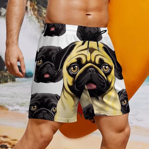 • Cool&Comfortable: High quality Black Yellow Pug printed Swim Shorts, Keeps you dry and flexible while you play, providing a comfortable and breathable dressing experience.And it is fashion. Perfect for travel, they're easy to carry and ready for beach days, pool parties, or any adventure!