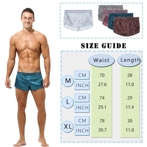 QiaTi Men's Silk Boxer Shorts Athletic Supporters Jockstrap Boxers Underwear Silky Side Split Lounge Short Pants for Men 3