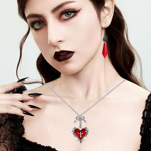 HOT ! Gothic Bat Earrings and Vampire Necklace Set, Vampire Accessories Women, Halloween Jewelry with Choker, Black Dark Red Heart Pendant Costume Jewelry, Goth Witch Gift Collection.