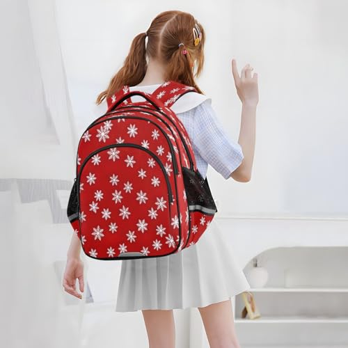 White Snowflakes Red Backpack for School Boys Girls Ages 8-14, Elementary Backpack 1