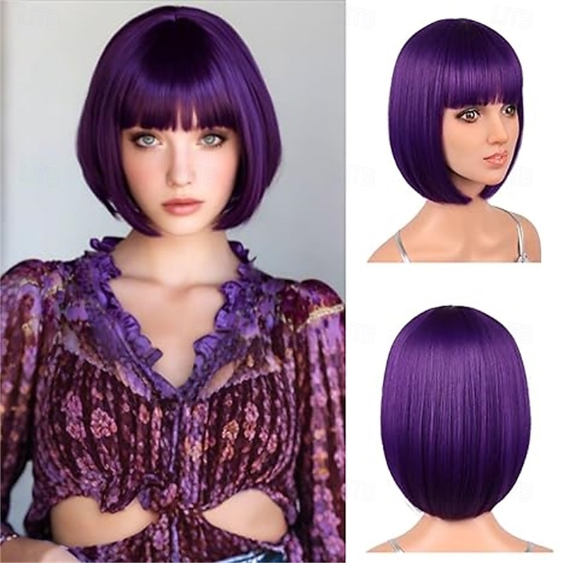 $16.49 - 12 Inch Short Bob Pink Mixed Purple Wig with Bangs Colorful Wig for Halloween Daily Cosplay & Party Use Heat Resistant Straight Synthetic Cosplay Party Wigs for Women Purple Pink 2025. Shop for cheap Party Wigs online? Buy at lightinthebox.com on sale today!