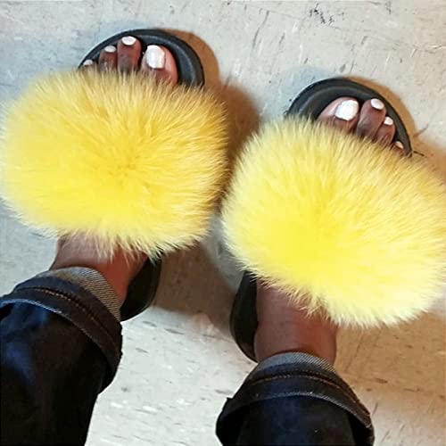 Real Fox Fur Slides for Women Open Toe Cute Furry Fur Slippers Indoor or Outdoor faux Fur Slide Sandals with Fluffy Fur and Soft Sole 6