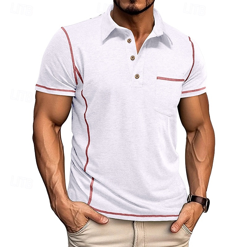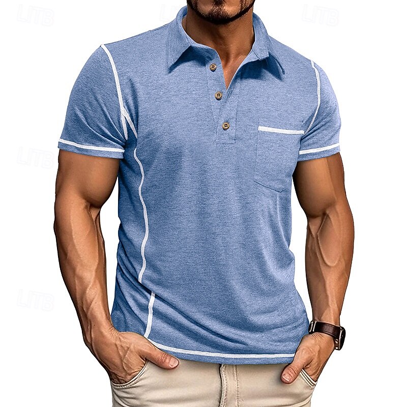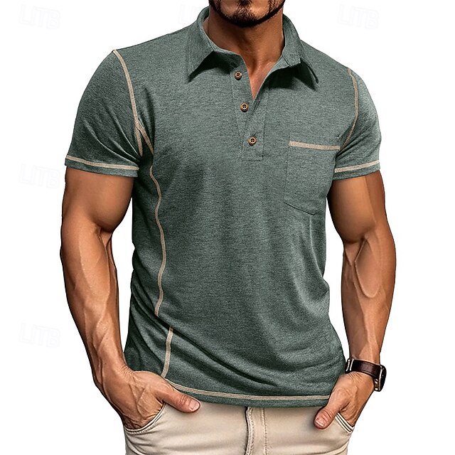 More information about Men's Golf Shirt Golf Polos Shirts Work Casual Lapel Short Sleeve Basic Modern Color Block Patchwork Buttons Summer Regular Fit Black White Green Khaki Light Blue Gray Golf Shirt