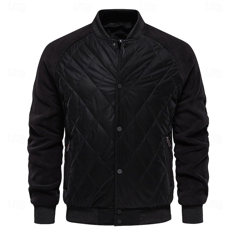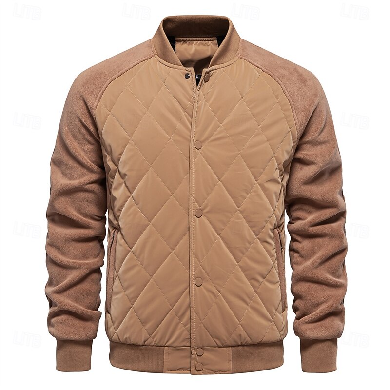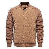 More information about Men's Bomber Jacket Fleece Jacket Padded Casual Daily Vintage Style Fall & Winter Color Block Casual Standing Collar Regular Camel Apricot Black Army Green Gray Jacket