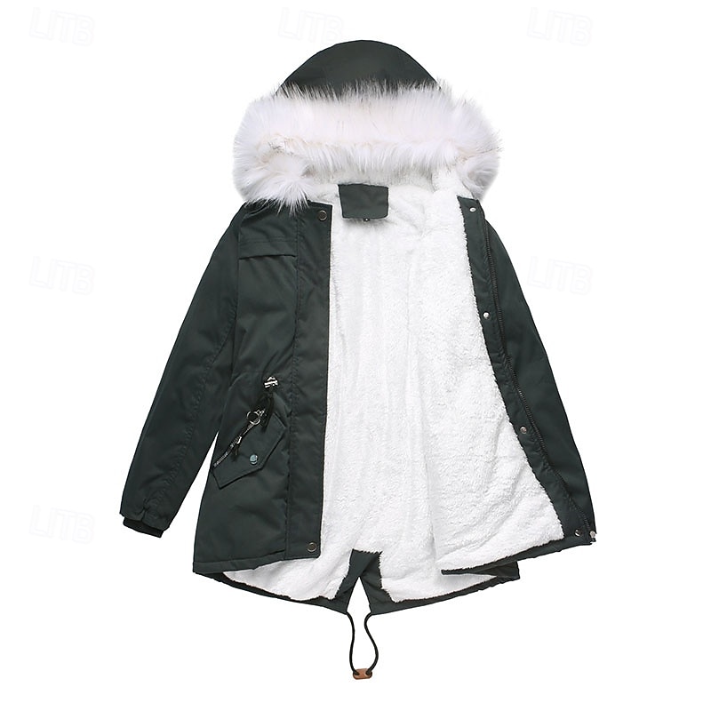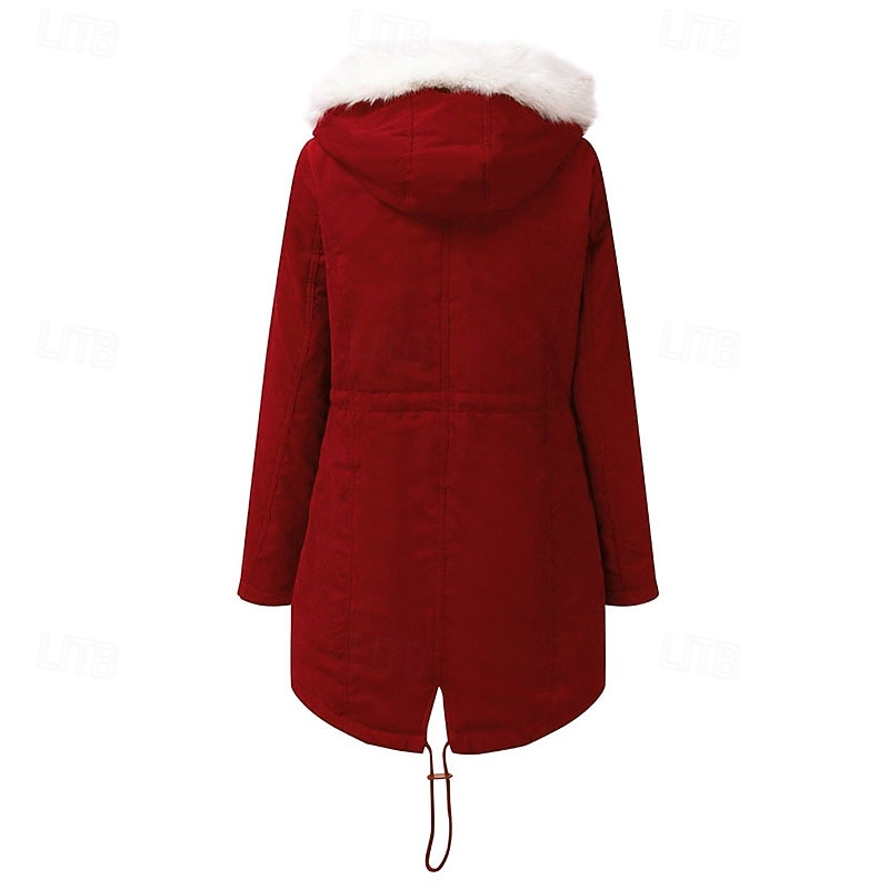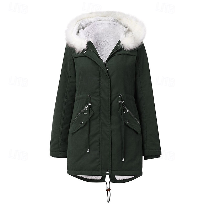 More information about Women's Parka Warm Comfortable Zipper Pocket With Belt Casual Plain Vacation Street Casual Daily Wear Long Hooded Regular Fit Long Sleeve Outerwear Navy Black Pink Fall Winter