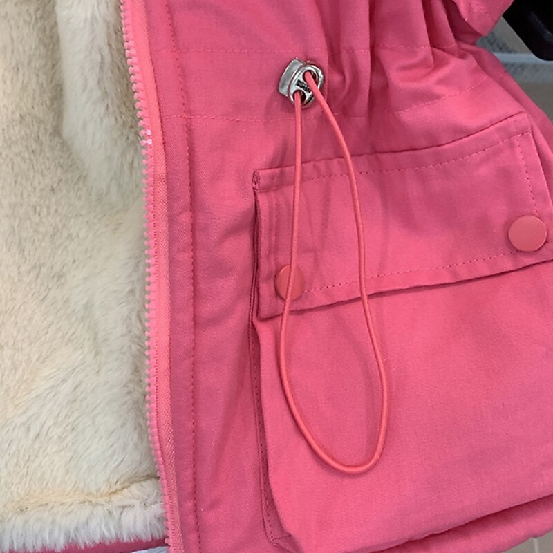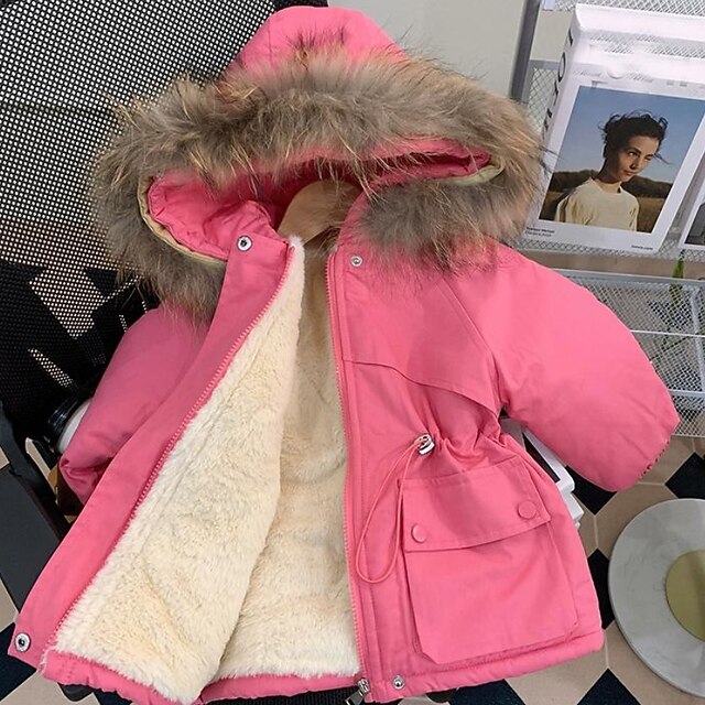 HOT ! Kids Girls' Winter Coat Solid Color Active Zipper Pocket School Coat Outerwear 2-9 Years Fall piece of red khaki