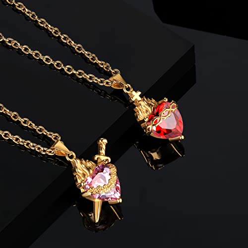 HOT ! Gold Sacred Heart of Jesus | Immaculate Heart of Mary Necklace for Women with Cubic Zirconia Gemstone Religious Jewelry Gift
