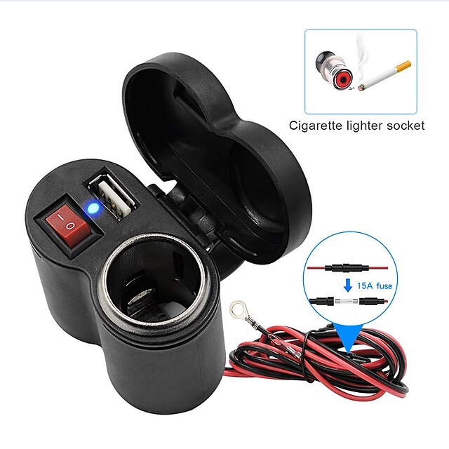 More information about StarFire Motorcycle USB Charger Cigarette Lighter Socket Usb Lighter Motorbike Handlebar Power Adapter with Switch Waterproof Cover