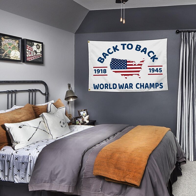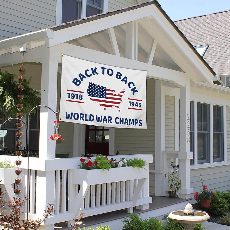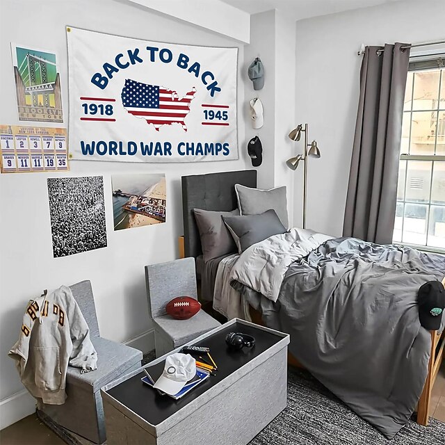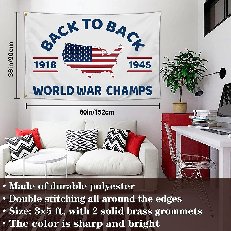 $11.99 - Back To Back World War Champs Flag, 1918-1945 USA World War Humor Banner For Patriotic Decor & Funny Historical Gags 2025. Shop for cheap Holiday Tapestries online? Buy at lightinthebox.com on sale today!