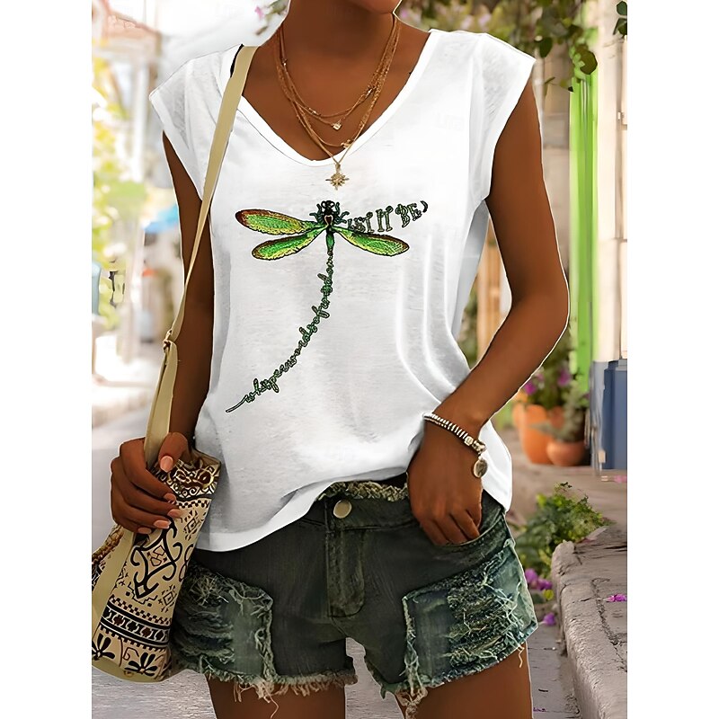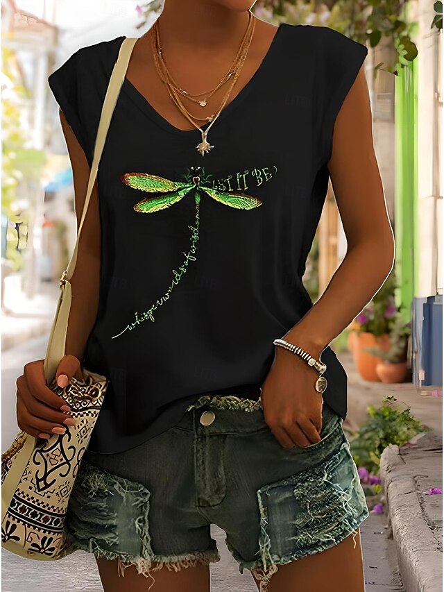Women's T Shirt Graphic Animal Stylish Casual Sleeveless V Neck Regular Tops Daily Going out Weekend Print Black White Blue Green Gray Summer Spring 10