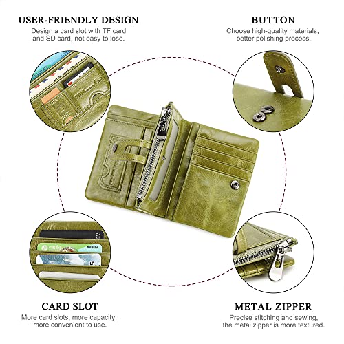 Contacts Womens AirTag Bifold Wallet Leather, Minimalist Leather Credit Card Purse for Women Small Coin Zipper Pocket with RFID Blocking (Green) 5