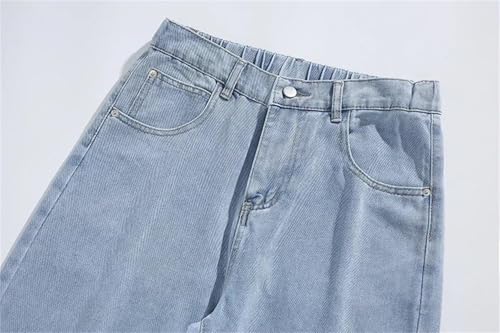 More information about Mens Jeans Spring Loose Straight Baggy Elastic Waist Wide Leg Casual Denim Pants Comfortable
